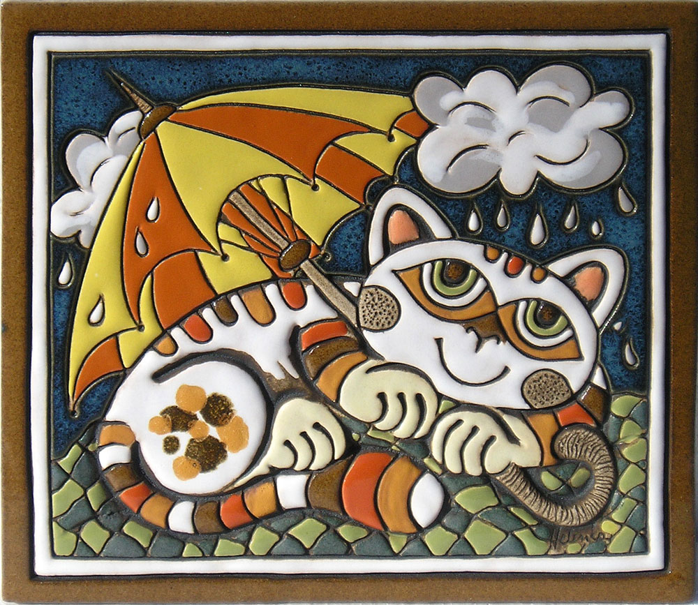 Keramický obrázek - Kočka s deštníkem K-103-ZL-POMskladem (do 7 dnů)1 076 Kč/ 1ks