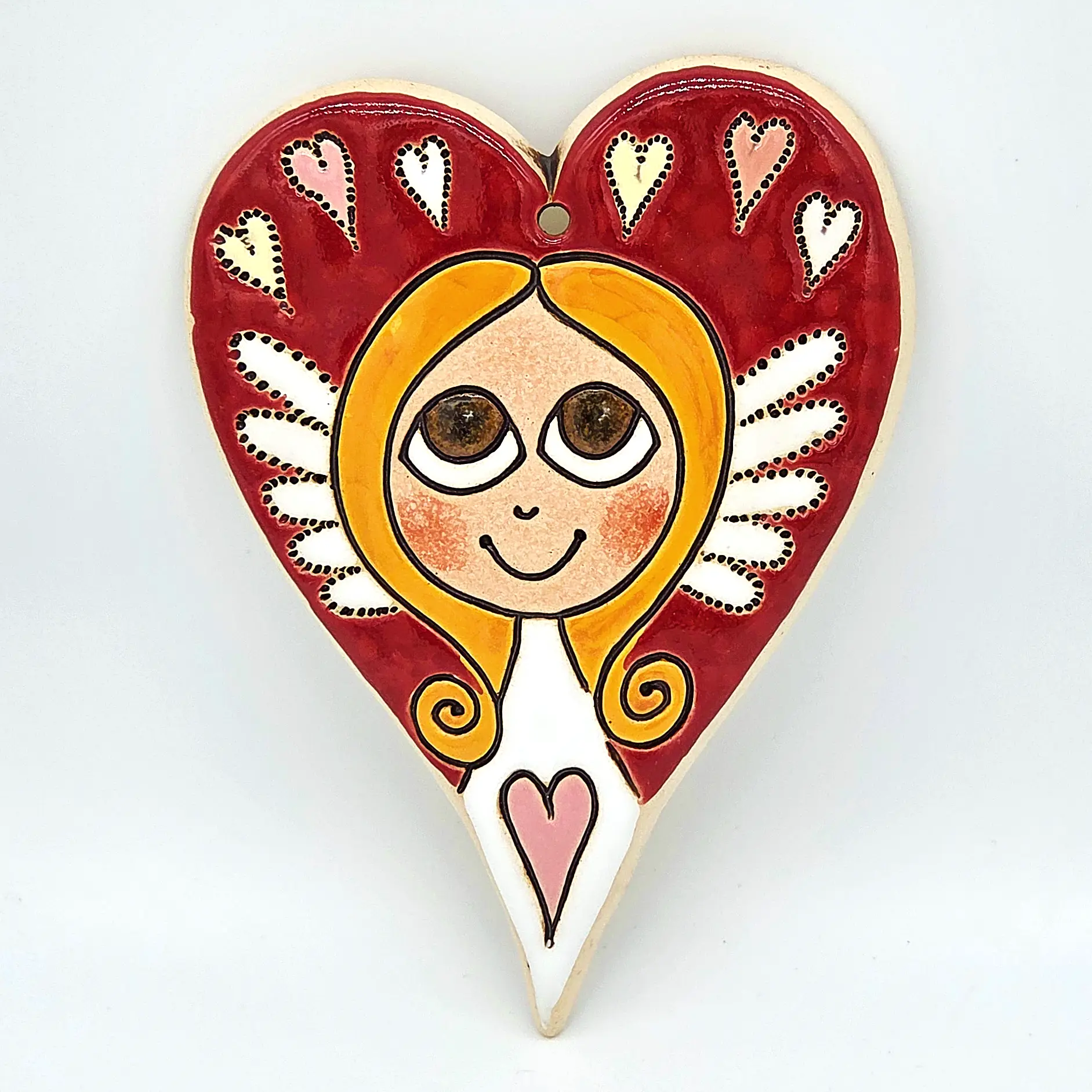 Keramické Srdíčko XL: Ručně malovaná dekorace s duší Hledáte jedinečnou bytovou dekoraci nebo originální dárek od českého autora? Tento keramický obrázek je výsledkem pečlivé ruční práce výtvarnice Helenky Buko Kubíčkové. Každý kus je originál, přímo z dílny české autorky. Tento kousek je ideální pr... celý popis