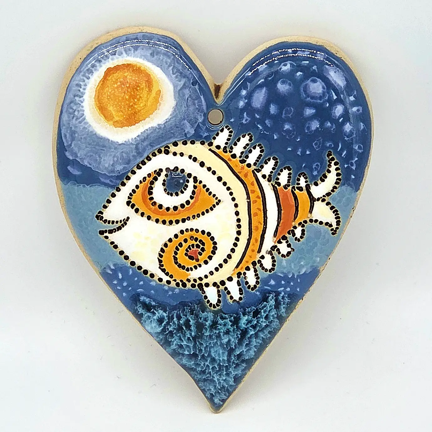 Keramické Srdíčko XL: Ručně malovaná dekorace s duší Hledáte jedinečnou bytovou dekoraci nebo originální dárek od českého autora? Tento keramický obrázek je výsledkem pečlivé ruční práce výtvarnice Helenky Buko Kubíčkové. Každý kus je originál, přímo z dílny české autorky. Tento kousek je ideální pr... celý popis
