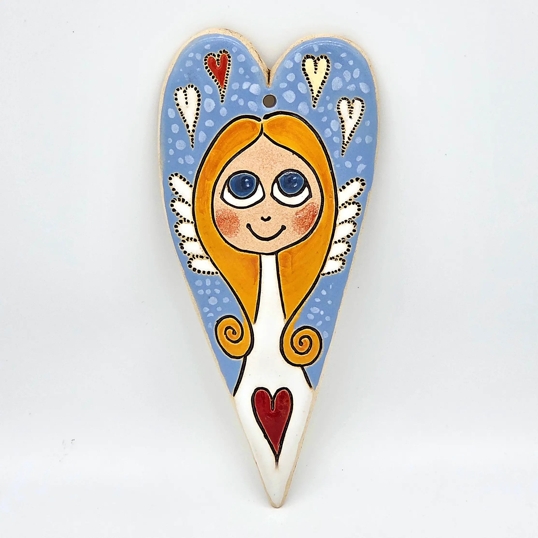 Hledáte jedinečnou bytovou dekoraci nebo originální dárek od českého autora? Tento keramický obrázek je výsledkem pečlivé ruční práce výtvarnice Helenky Buko Kubíčkové. Každý kus je originál, přímo z dílny české autorky. Tento kousek je ideální pro každého, kdo hledá nepřehlédnutelný symbol lásky a domova.