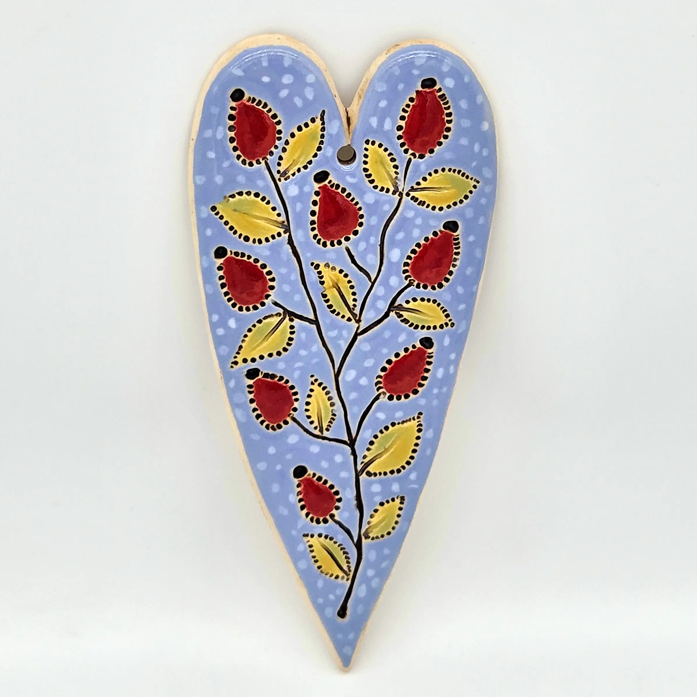 Keramické Srdíčko XL: Ručně malovaná dekorace s duší Hledáte jedinečnou bytovou dekoraci nebo originální dárek od českého autora? Tento keramický obrázek je výsledkem pečlivé ruční práce výtvarnice Helenky Buko Kubíčkové. Každý kus je originál, přímo z dílny české autorky. Tento kousek je ideální pr... celý popis