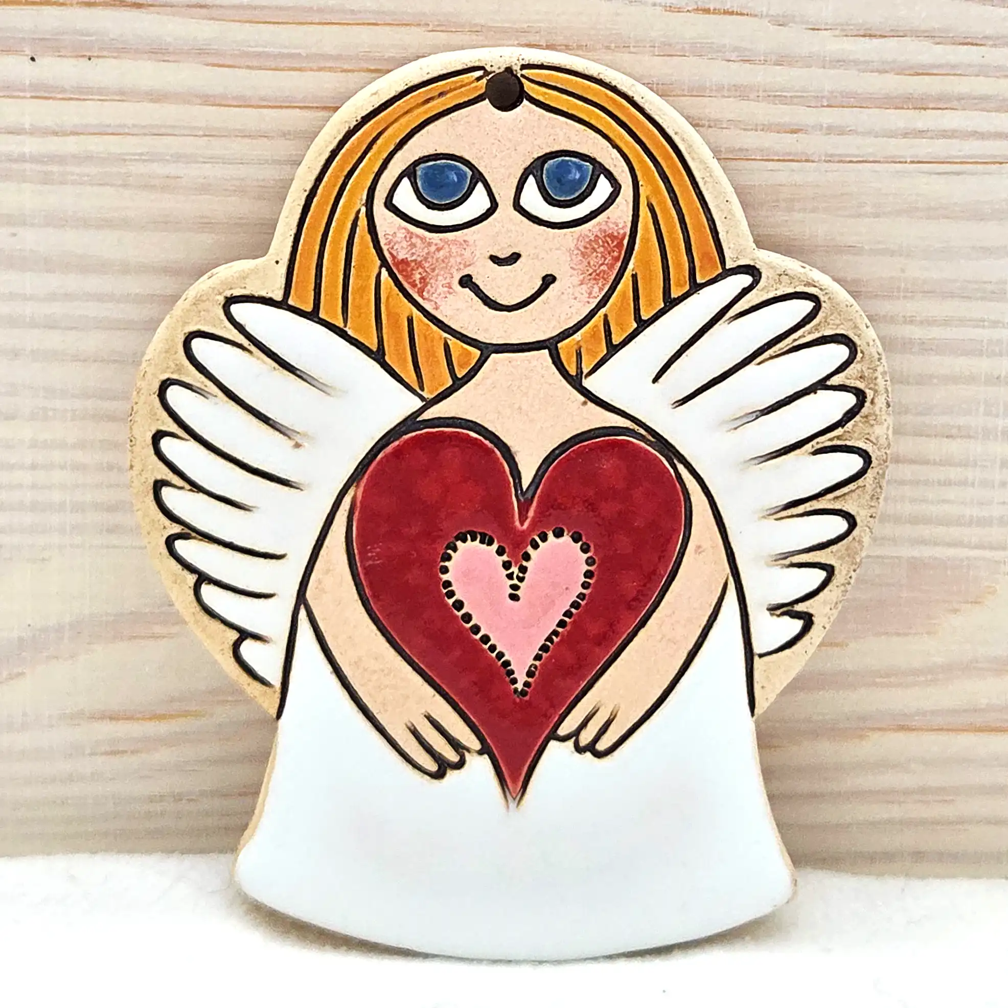 Hledáte jedinečnou bytovou dekoraci nebo originální dárek od českého autora? Tento keramický výrobek je výsledkem pečlivé ruční práce výtvarnice Helenky Buko Kubíčkové. Každý kus je originál, přímo z dílny české autorky. Tento kousek je ideální pro každého, kdo hledá nepřehlédnutelný symbol lásky a domova.