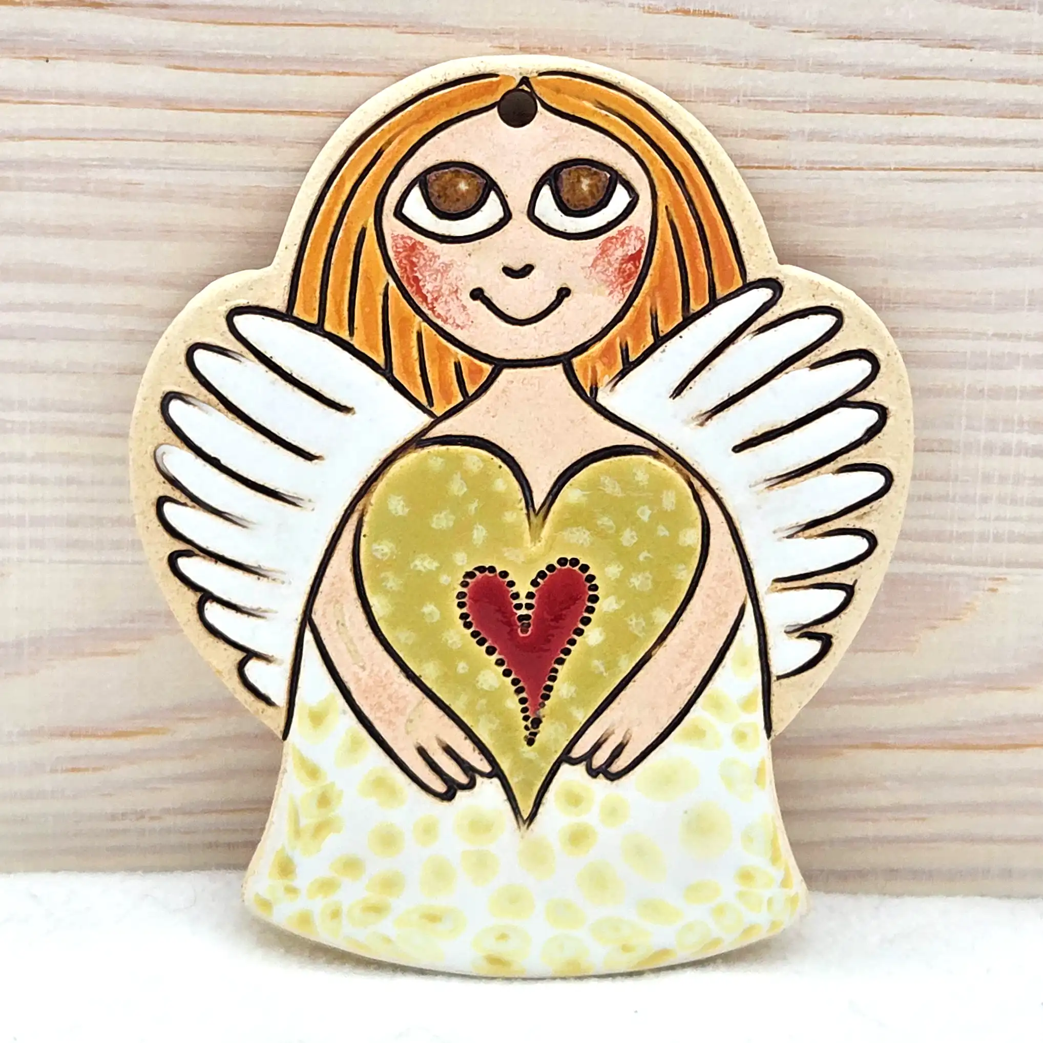 Hledáte jedinečnou bytovou dekoraci nebo originální dárek od českého autora? Tento keramický výrobek je výsledkem pečlivé ruční práce výtvarnice Helenky Buko Kubíčkové. Každý kus je originál, přímo z dílny české autorky. Tento kousek je ideální pro každého, kdo hledá nepřehlédnutelný symbol lásky a domova.