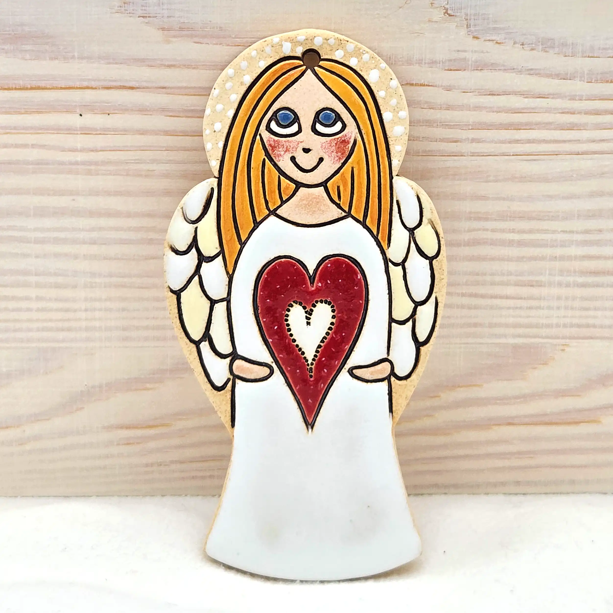 Hledáte jedinečnou bytovou dekoraci nebo originální dárek od českého autora? Tento keramický výrobek je výsledkem pečlivé ruční práce výtvarnice Helenky Buko Kubíčkové. Každý kus je originál, přímo z dílny české autorky. Tento kousek je ideální pro každého, kdo hledá nepřehlédnutelný symbol lásky a domova.