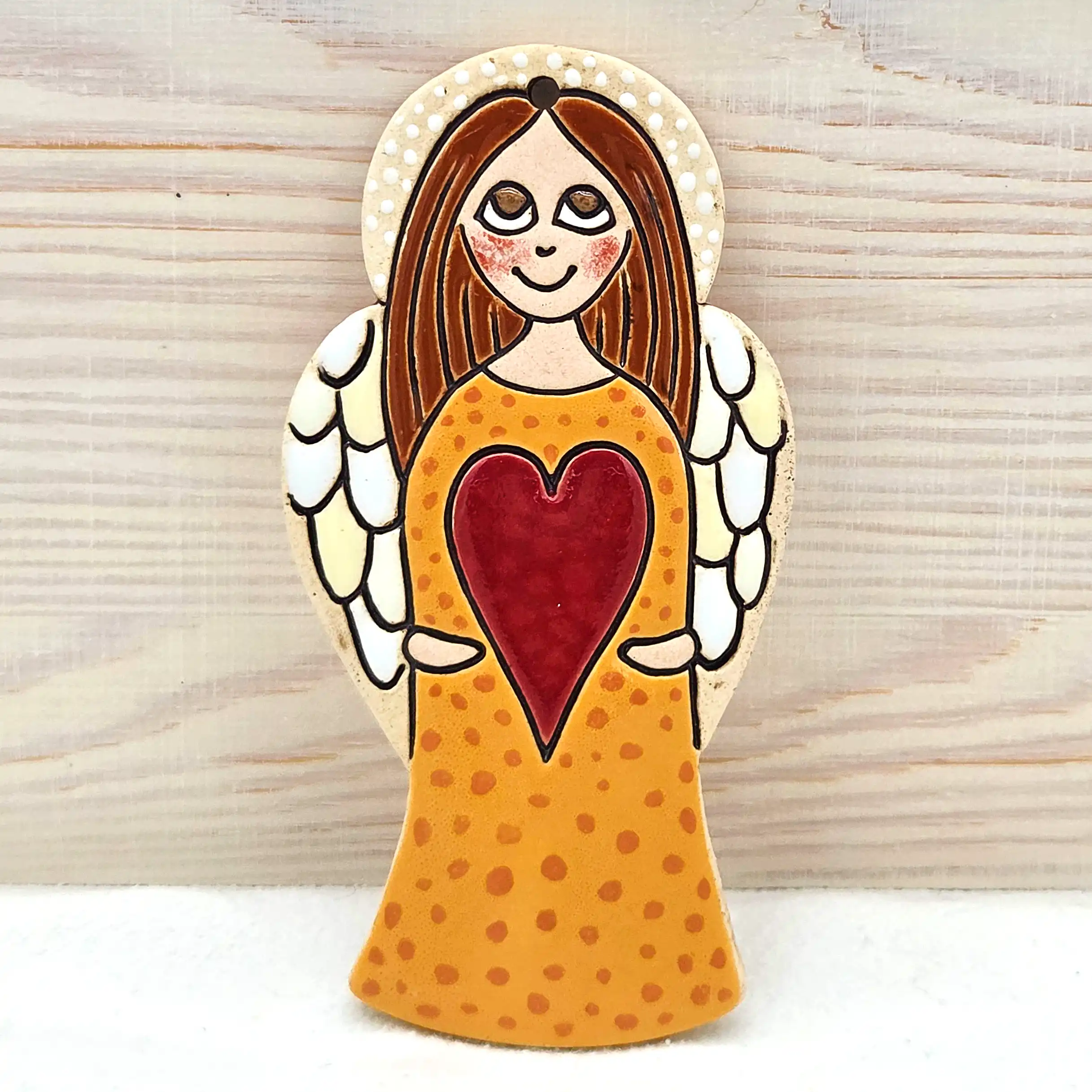Hledáte jedinečnou bytovou dekoraci nebo originální dárek od českého autora? Tento keramický výrobek je výsledkem pečlivé ruční práce výtvarnice Helenky Buko Kubíčkové. Každý kus je originál, přímo z dílny české autorky. Tento kousek je ideální pro každého, kdo hledá nepřehlédnutelný symbol lásky a domova.