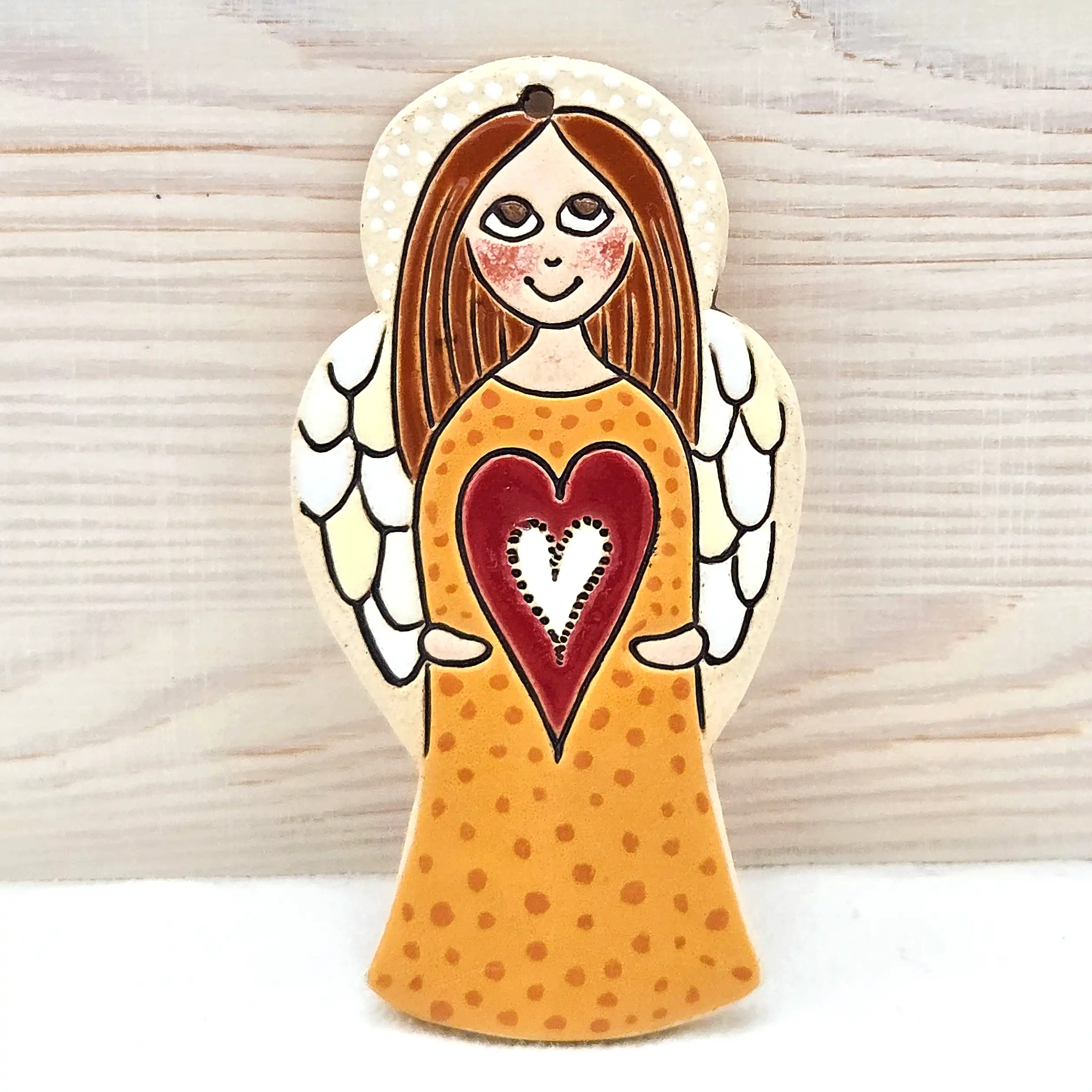 Hledáte jedinečnou bytovou dekoraci nebo originální dárek od českého autora? Tento keramický výrobek je výsledkem pečlivé ruční práce výtvarnice Helenky Buko Kubíčkové. Každý kus je originál, přímo z dílny české autorky. Tento kousek je ideální pro každého, kdo hledá nepřehlédnutelný symbol lásky a domova.