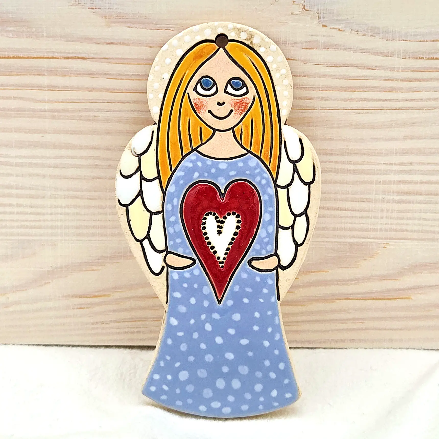 Keramický andělíček: Ručně malovaná dekorace s duší Hledáte jedinečnou bytovou dekoraci nebo originální dárek od českého autora? Tento keramický výrobek je výsledkem pečlivé ruční práce výtvarnice Helenky Buko Kubíčkové. Každý kus je originál, přímo z dílny české autorky. Tento kousek je ideální pro... celý popis