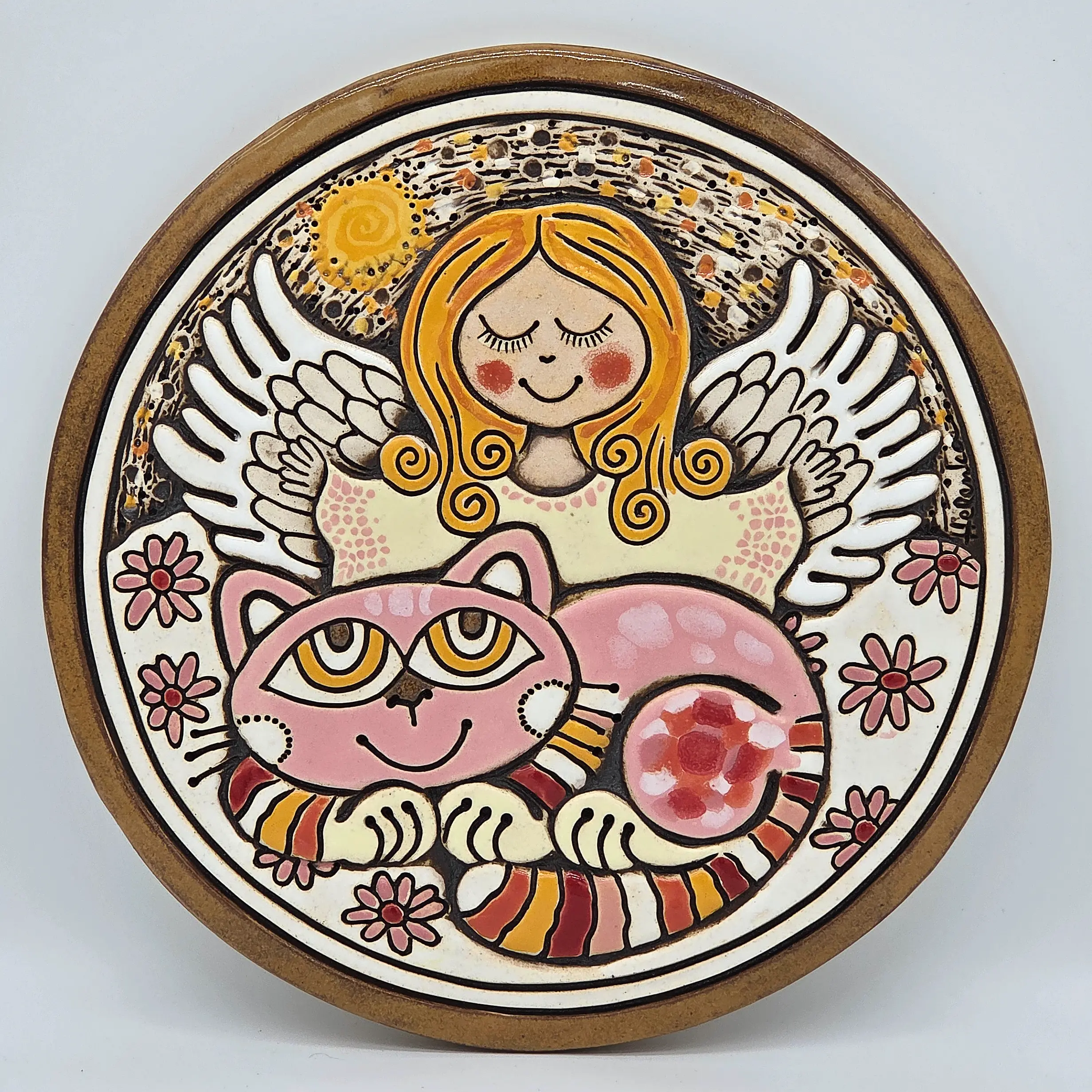 Keramický obrázek - Andělíček a kočka