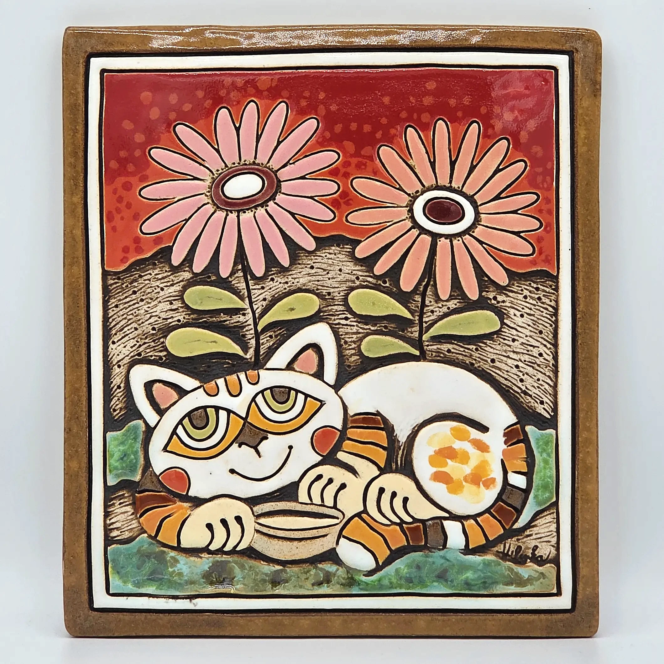 Obrázek je zhotoven z kvalitní keramické hmoty a následně ručně malován autorskými glazurami vlastní výroby. Díky výpalu na vysokou teplotu 1200°C je střep velmi pevný a barvy zůstávají stálé a syté i ve venkovním prostředí.