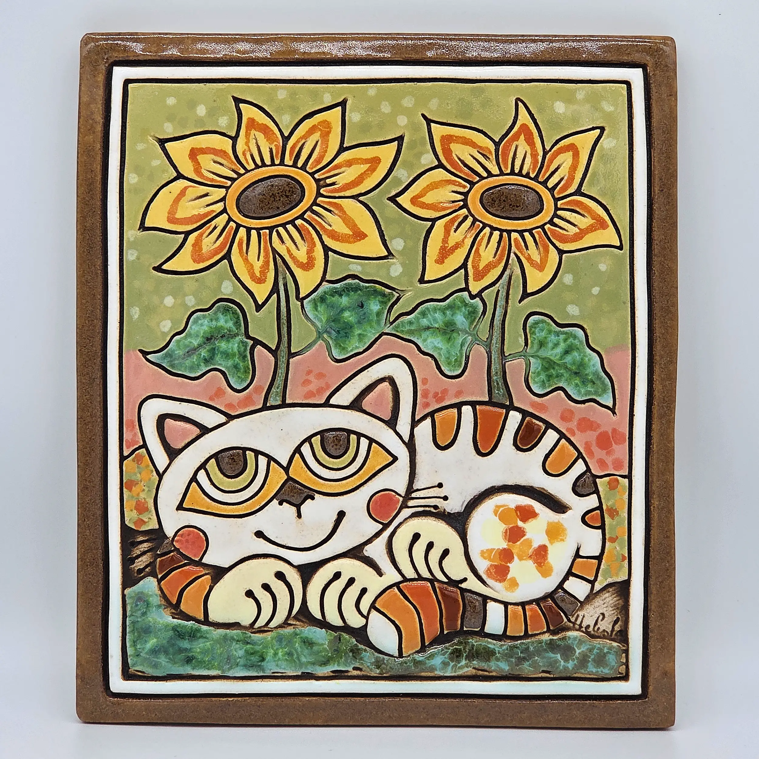 Obrázek je zhotoven z kvalitní keramické hmoty a následně ručně malován autorskými glazurami vlastní výroby. Díky výpalu na vysokou teplotu 1200°C je střep velmi pevný a barvy zůstávají stálé a syté i ve venkovním prostředí.