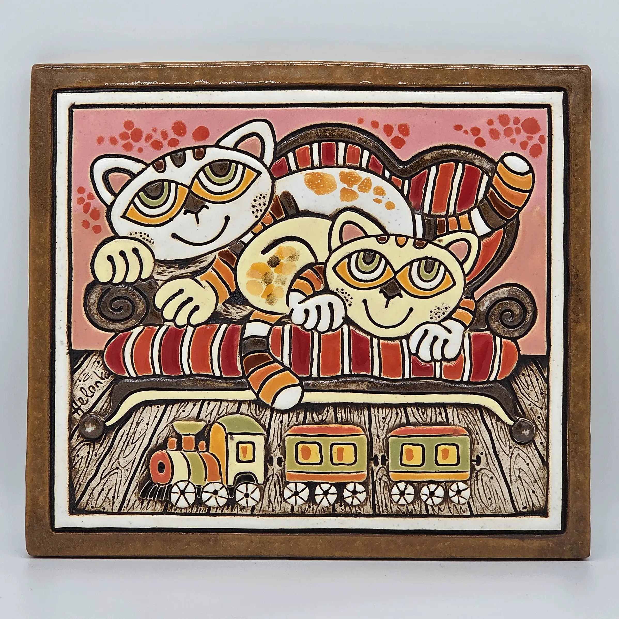 3. Keramický obrázek - Kočky a vláček