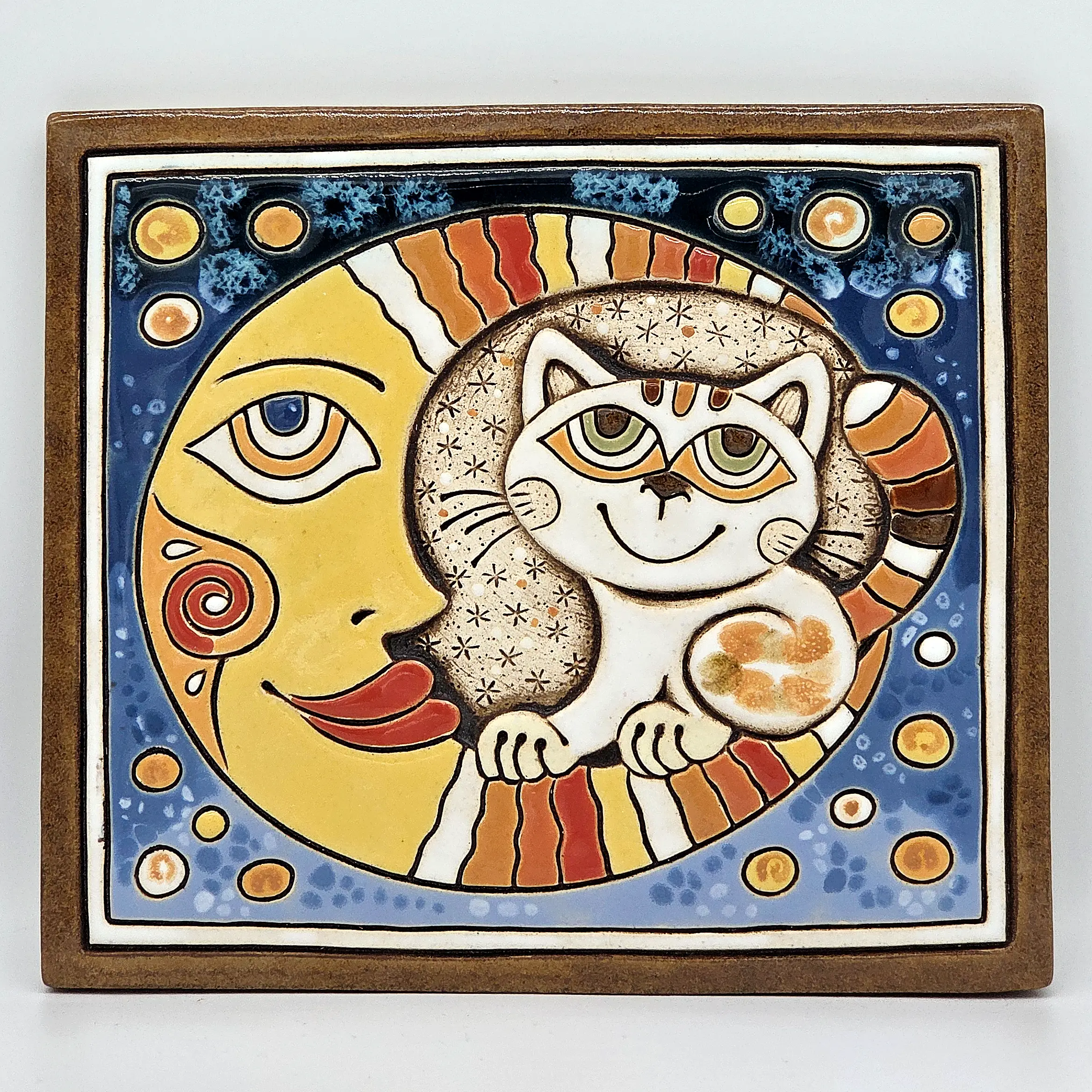 Keramický obrázek - Měsíc a kočka